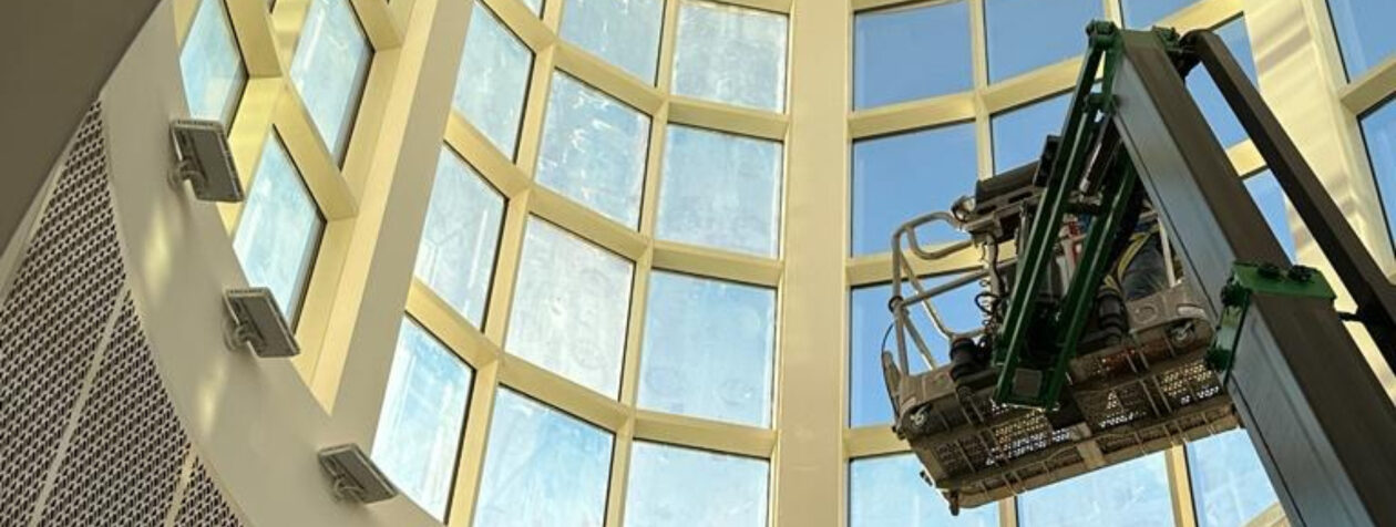 From exposed beams and trusses to skylights, light fixtures, ceiling art, and soaring atriums, many interior features in offices, gyms, restaurants, manufacturing sites, and event spaces quietly collect hard-to-reach dust. Over time, these soils can re-aerosolize, clog HVAC returns, and degrade indoor air quality — issues that even the most meticulous interior window cleaning cannot counteract. Because routine janitorial crews often lack the lifts, fall protection, and specialized training required for safe at-height work, targeted high dusting is essential.